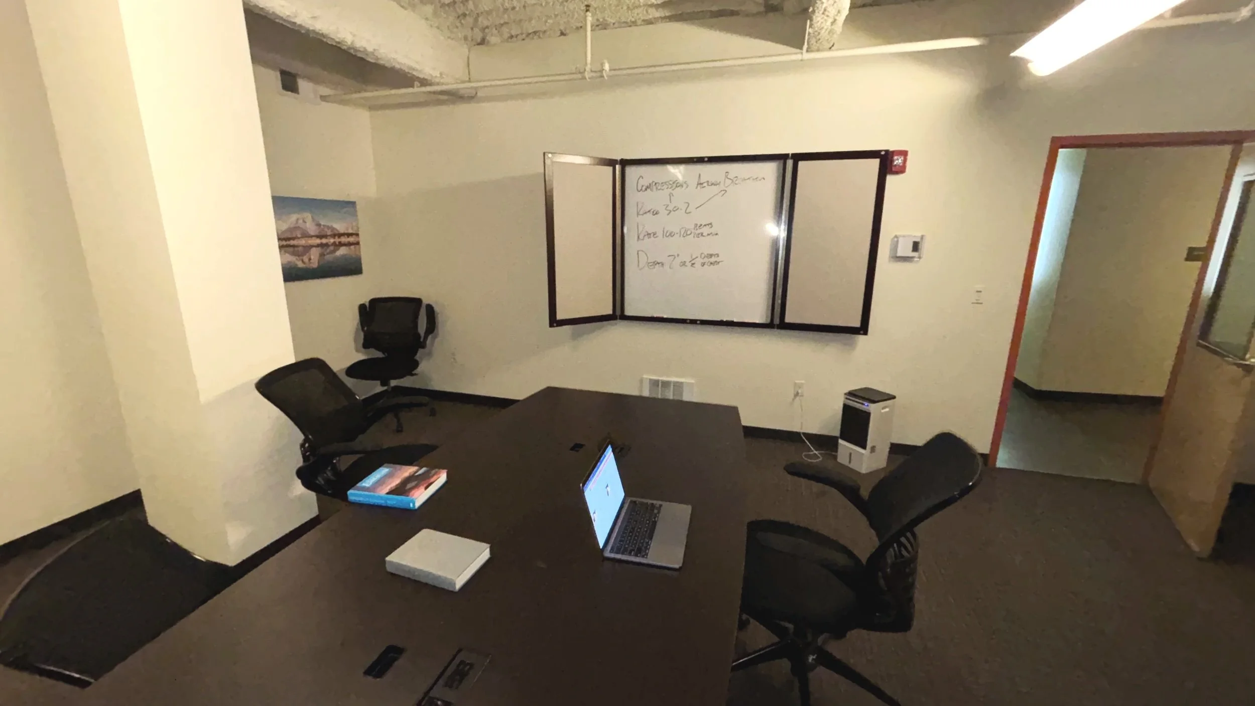 Don’t have a large team, but need white board space to work through strategy or brainstorm? This private space is available to be reserved.